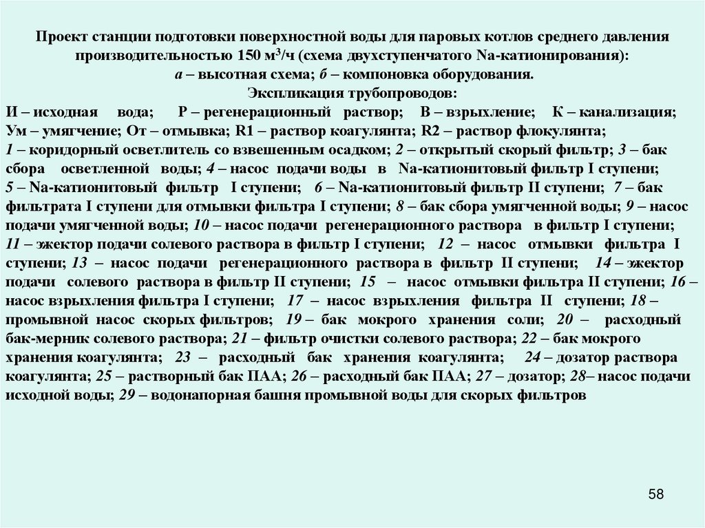 Проект станции подготовки поверхностной воды для паровых котлов среднего давленияпроизводительностью 150 м3/ч (схема двухступенчатого Na-катионирования):