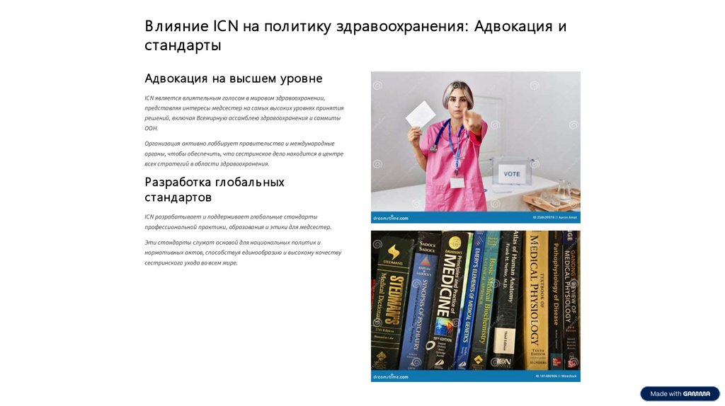 В л ияние ICN на пол итику здравоохранения: Адвокация истандарты