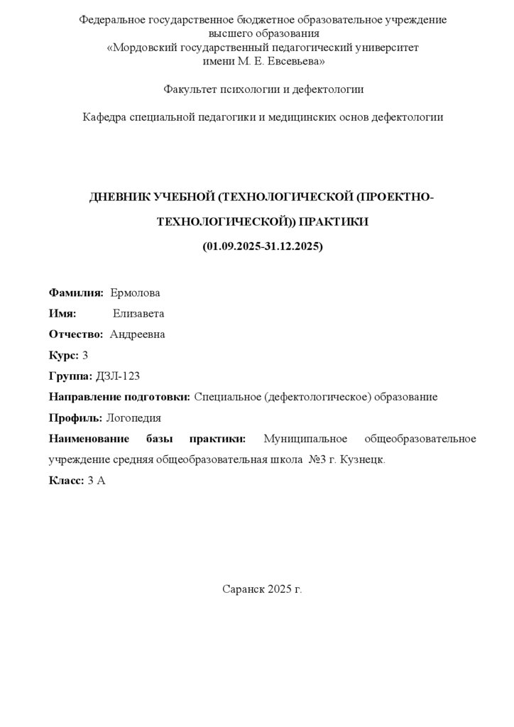 ДНЕВНИК УЧЕБНОЙ (ТЕХНОЛОГИЧЕСКОЙ (ПРОЕКТНОТЕХНОЛОГИЧЕСКОЙ)) ПРАКТИКИ