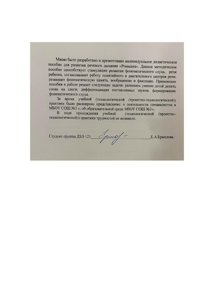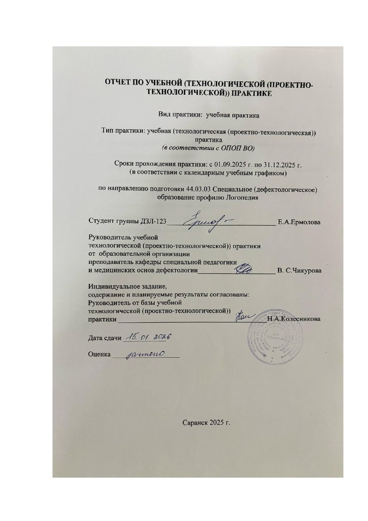Ермолова Елизавета Андреенва в ходе учебной (технологической