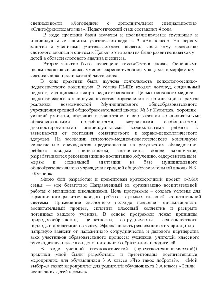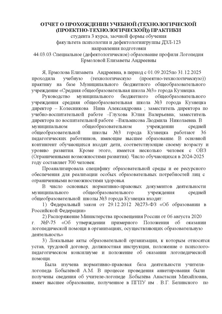 конкретной педагогической деятельности. Ермолова Елизавета Андреевна