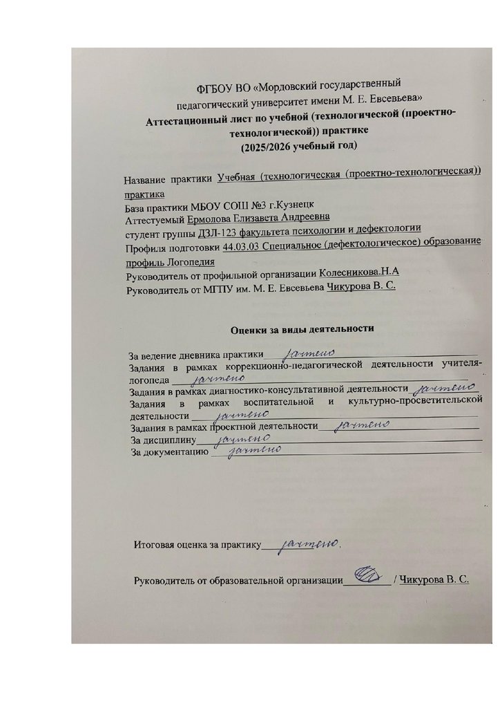 практики Ермолова Елизавета Андреевна продемонстрировала базовый