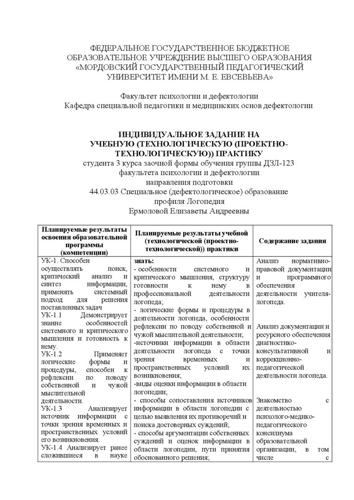 «МОРДОВСКИЙ ГОСУДАРСТВЕННЫЙ ПЕДАГОГИЧЕСКИЙ