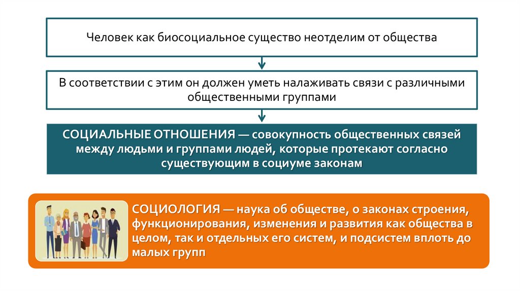 Человек как биосоциальное существо неотделим от обществаВ соответствии с этим он должен уметь налаживать связи с различными