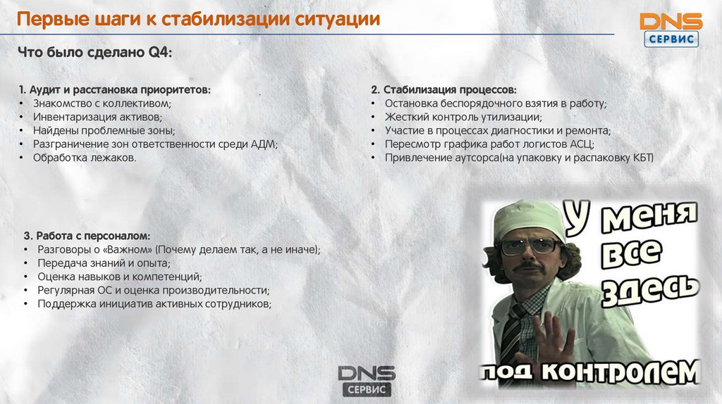 Первые шаги к стабилизации ситуацииЧто было сделано Q4: