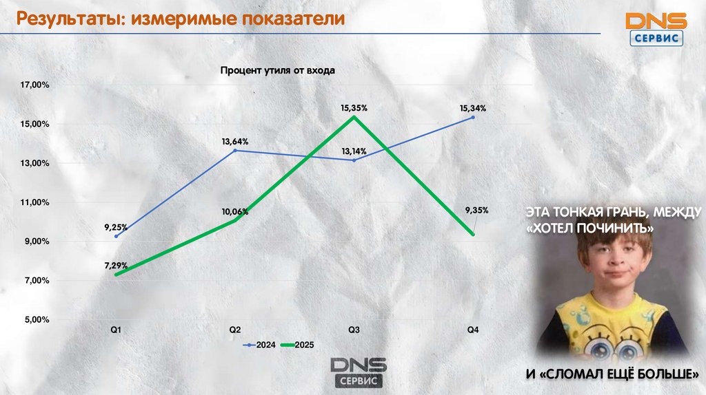 Результаты: измеримые показателиПроцент утиля от входа