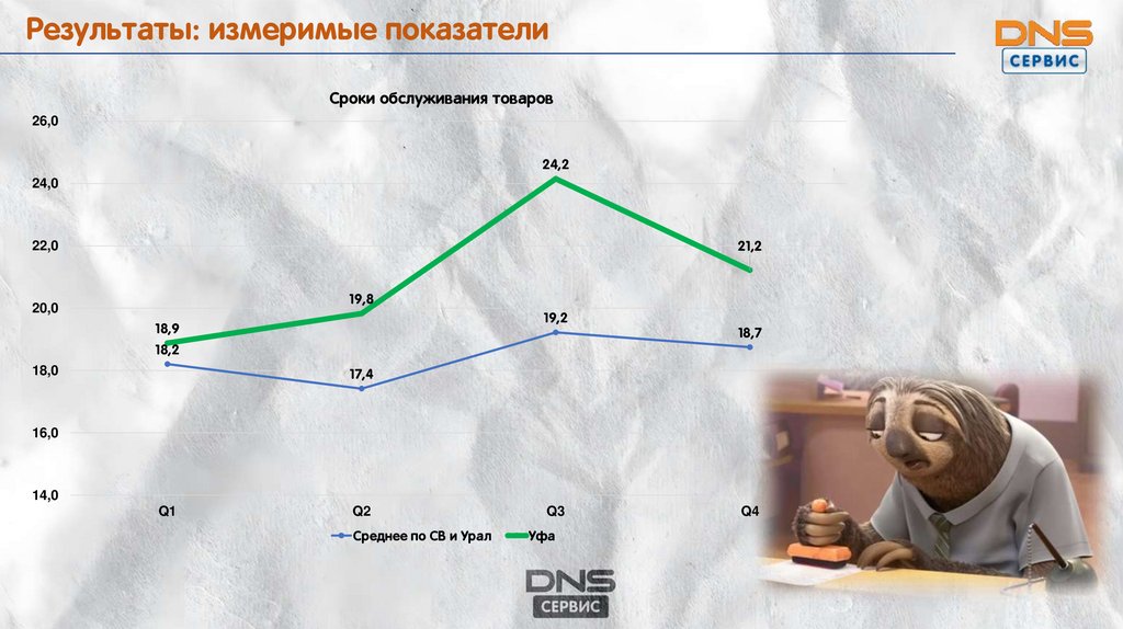 Результаты: измеримые показателиСроки обслуживания товаров