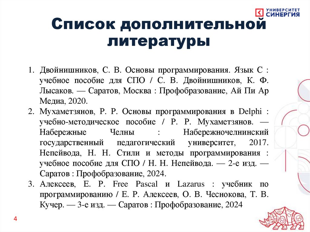 Список дополнительнойлитературы