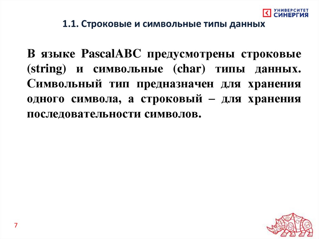 1.1. Строковые и символьные типы данныхВ языке PascalABC предусмотрены строковые