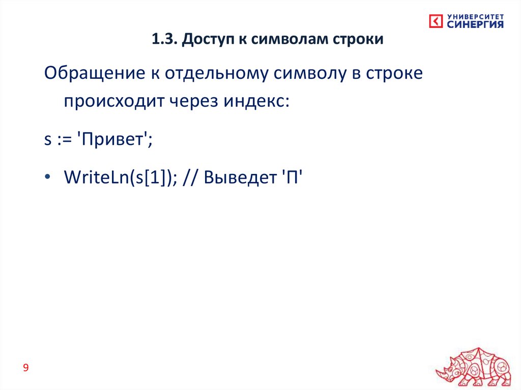 1.3. Доступ к символам строкиОбращение к отдельному символу в строке