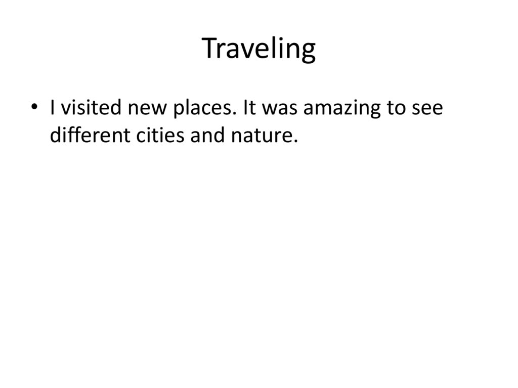 Traveling• I visited new places. It was amazing to see