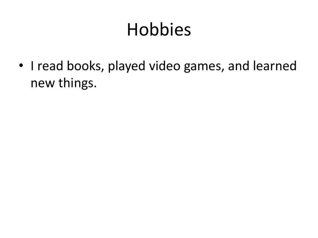 Hobbies• I read books, played video games, and learned
