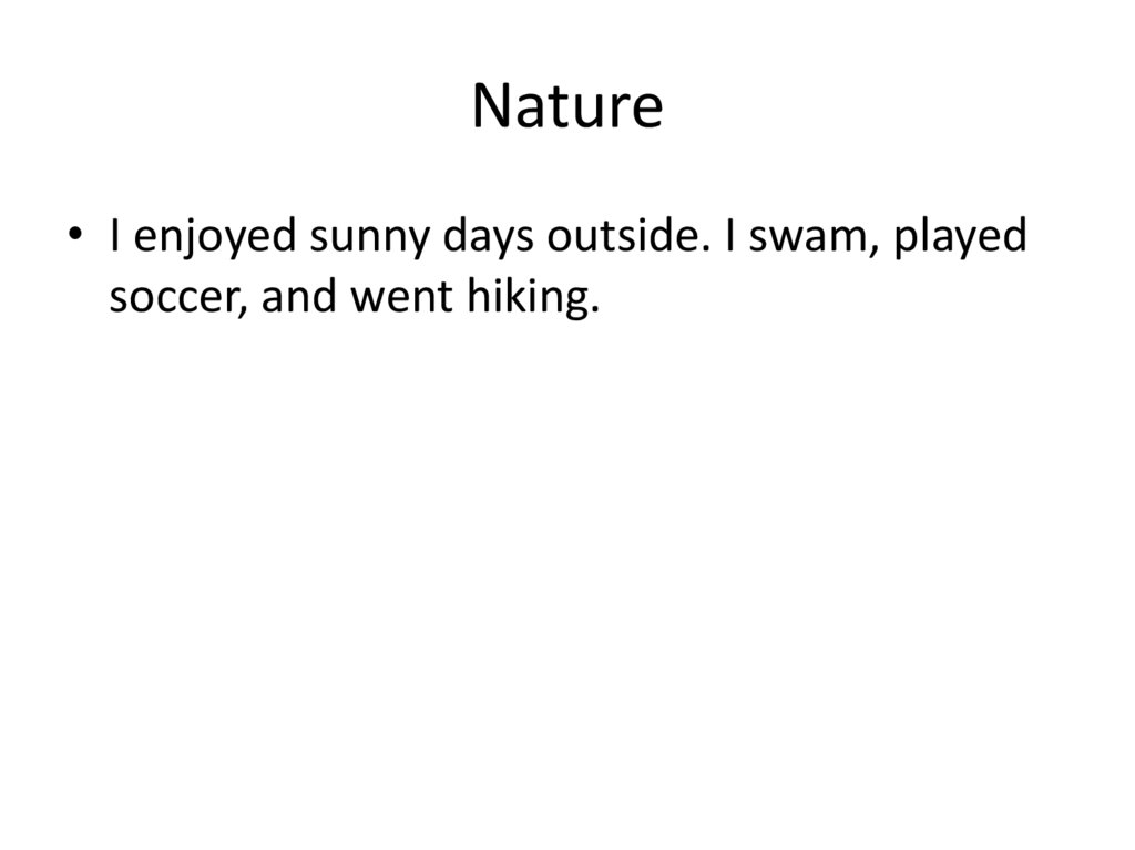Nature• I enjoyed sunny days outside. I swam, played