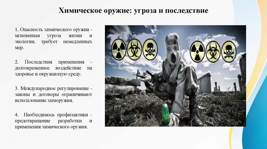 Химическое оружие: угроза и последствие1. Опасность химического оружия мгновенная угроза жизни и