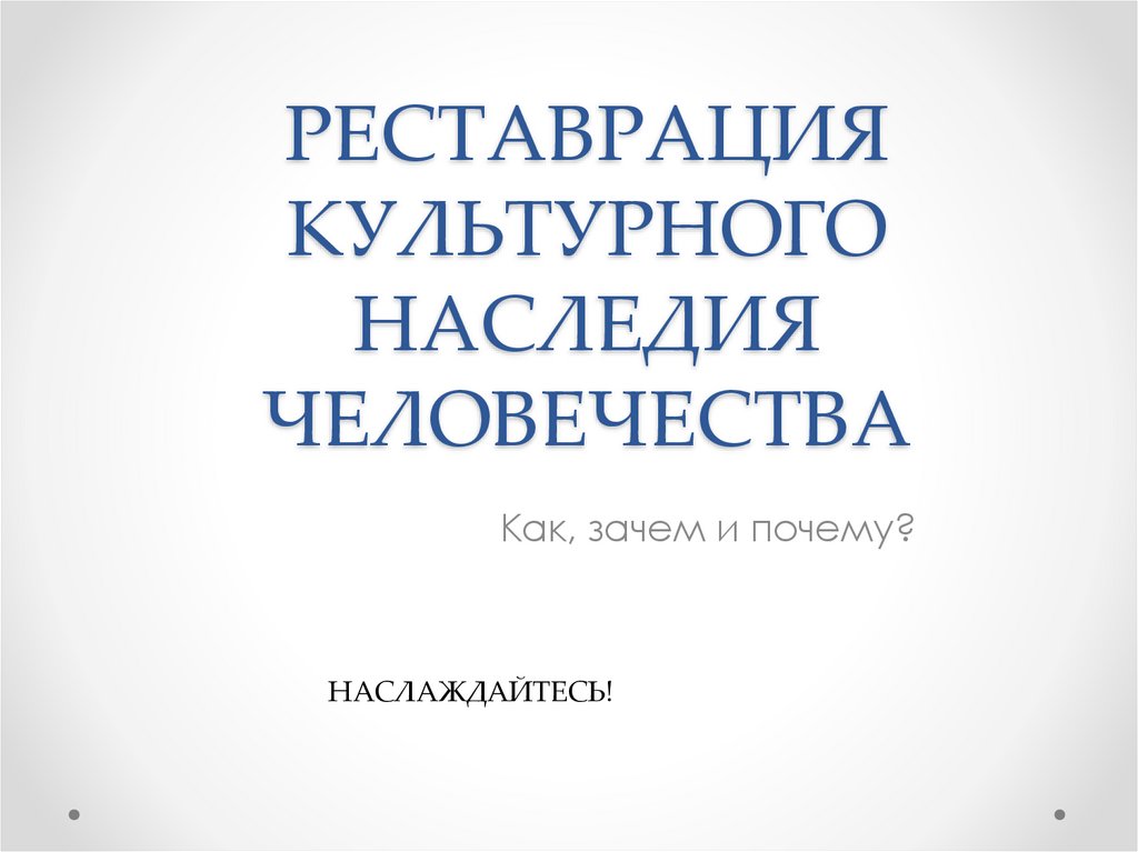 1. РЕСТАВРАЦИЯ КУЛЬТУРНОГО НАСЛЕДИЯ ЧЕЛОВЕЧЕСТВА