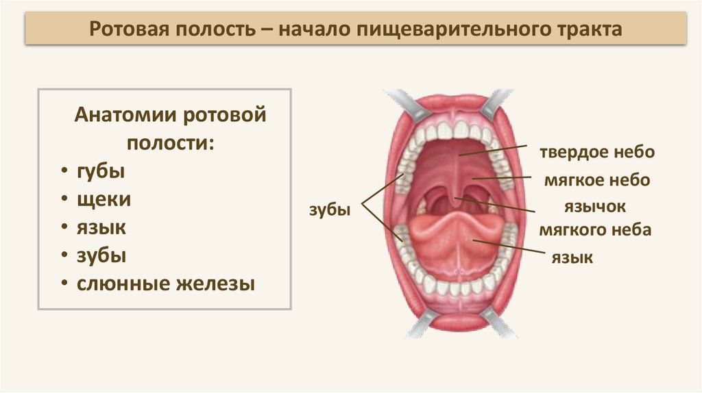Ротовая полость – начало пищеварительного трактаАнатомии ротовой