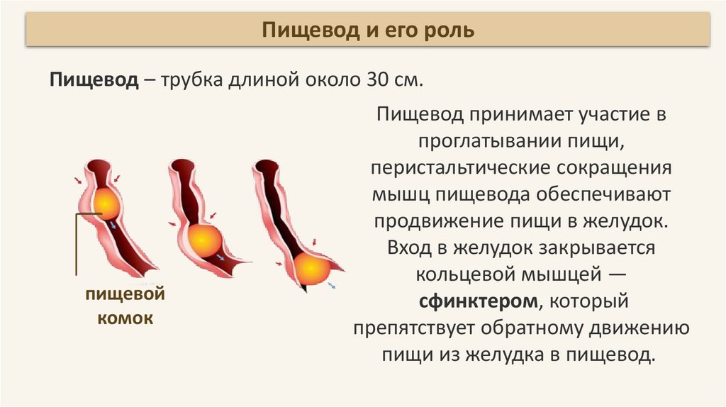 Пищевод и его рольПищевод – трубка длиной около 30 см.