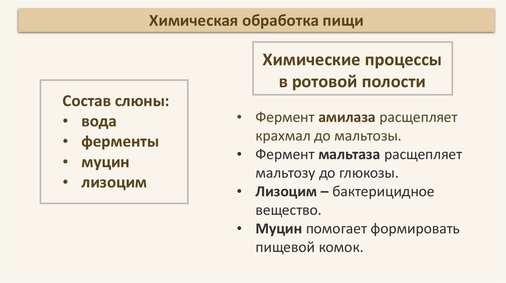 4. Лизоцим, содержащийся в слюне, обеззараживает пищу.