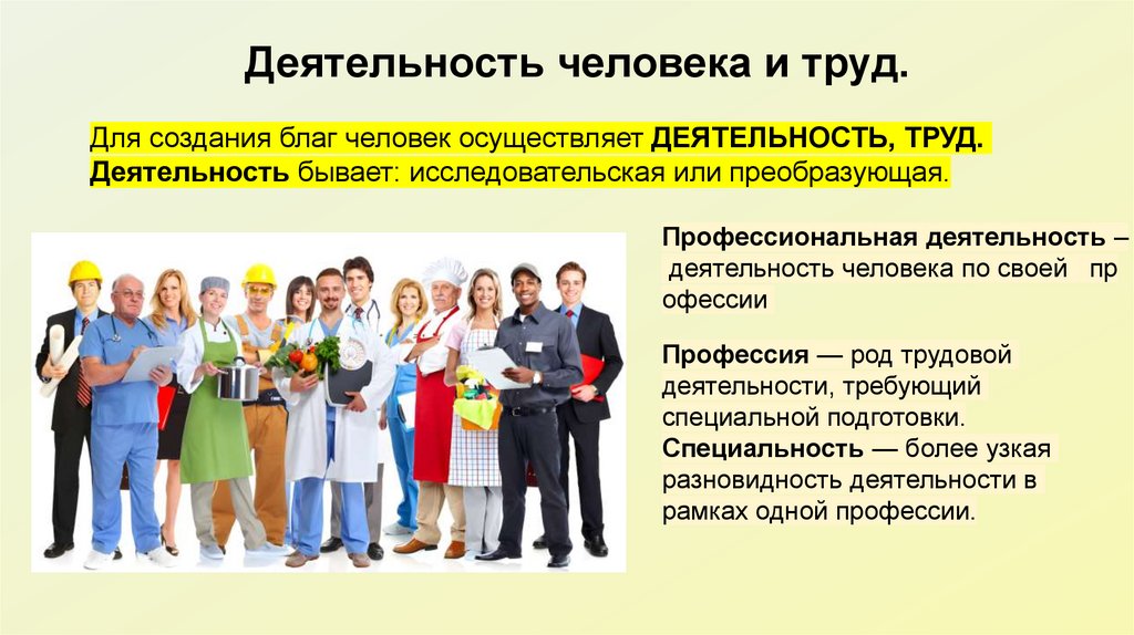 Деятельность человека и труд.Для создания благ человек осуществляет ДЕЯТЕЛЬНОСТЬ, ТРУД.