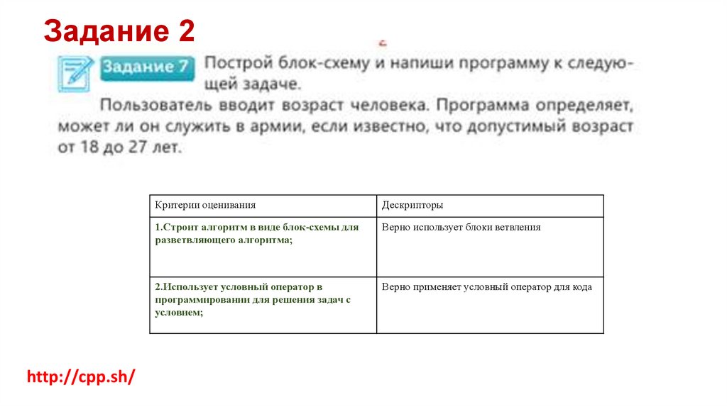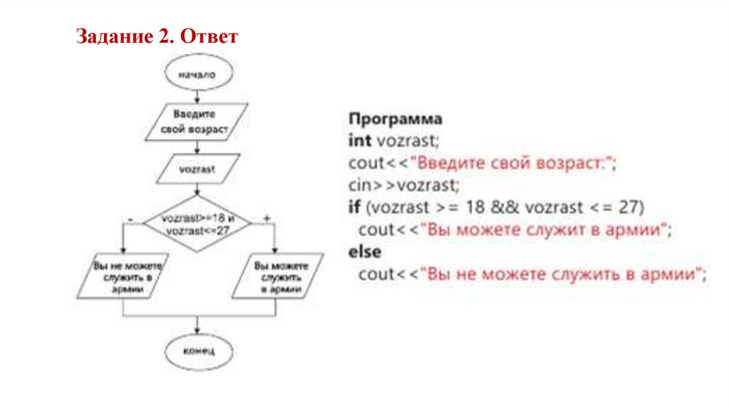 строит алгоритм в виде блок-схемы для разветвляющего алгоритма