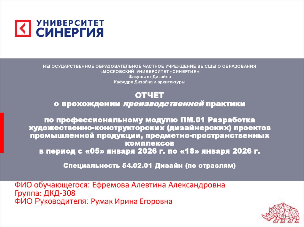 1. ОТЧЕТ о прохождении производственной практики по профессиональному модулю ПМ.01 Разработка художественно-конструкторских