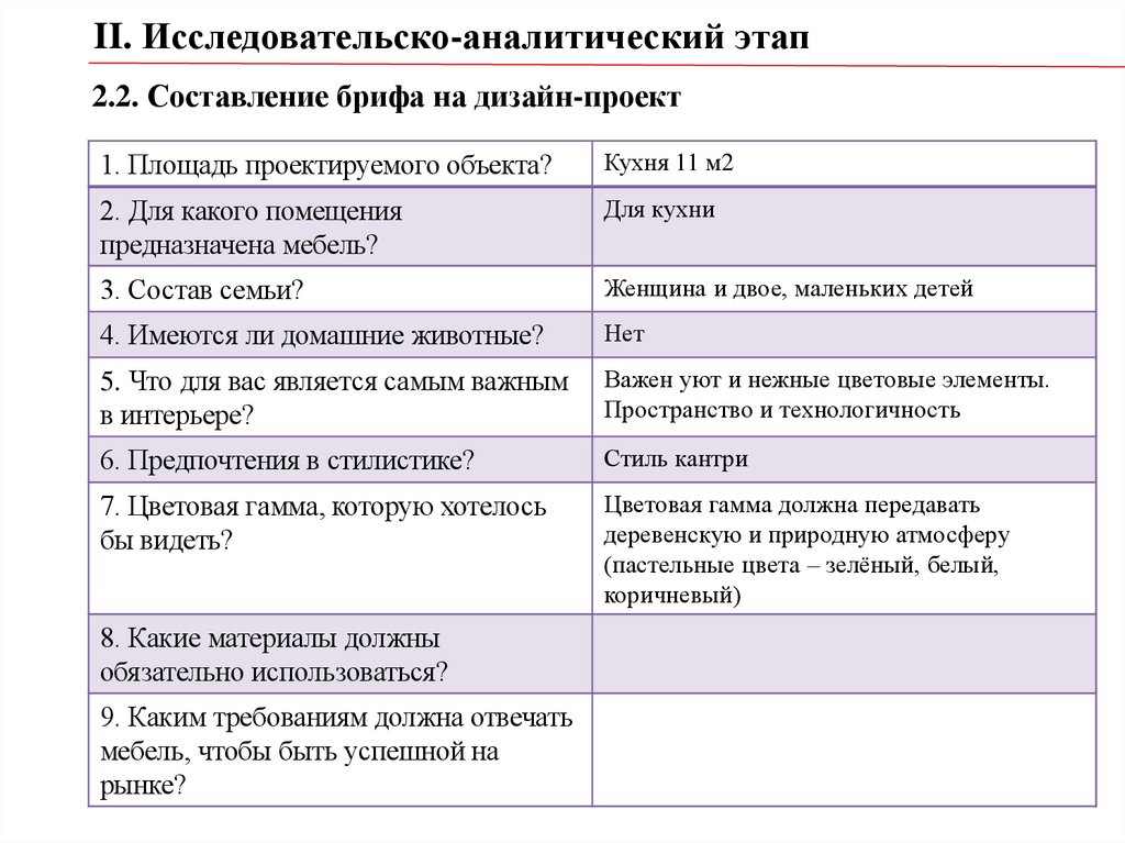 II. Исследовательско-аналитический этап2.2. Составление брифа на дизайн-проект