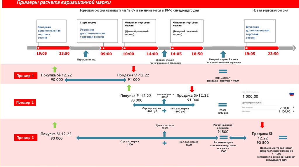 Примеры расчета вариационной маржиТорговая сессия начинается в 19-05 и заканчивается в 18-50 следующего дня