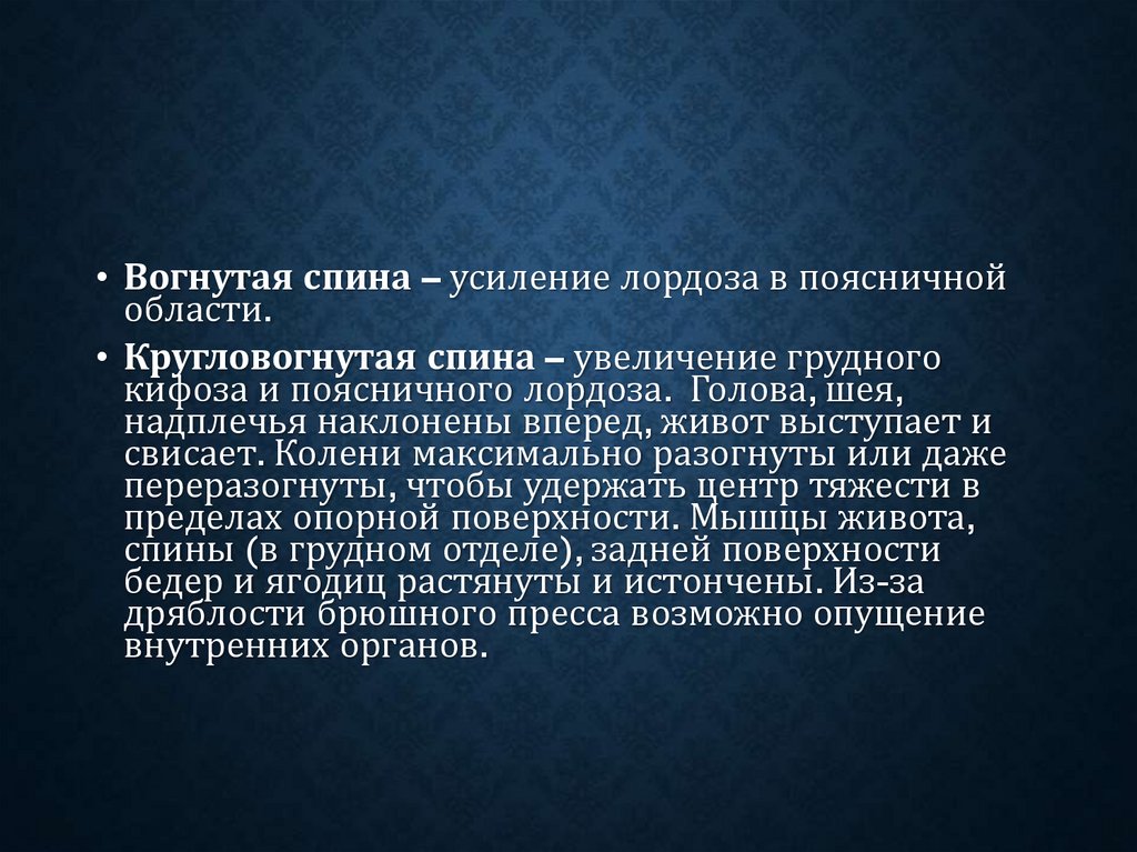 11. В сагиттальной плоскости различают следующие варианты нарушения осанки: