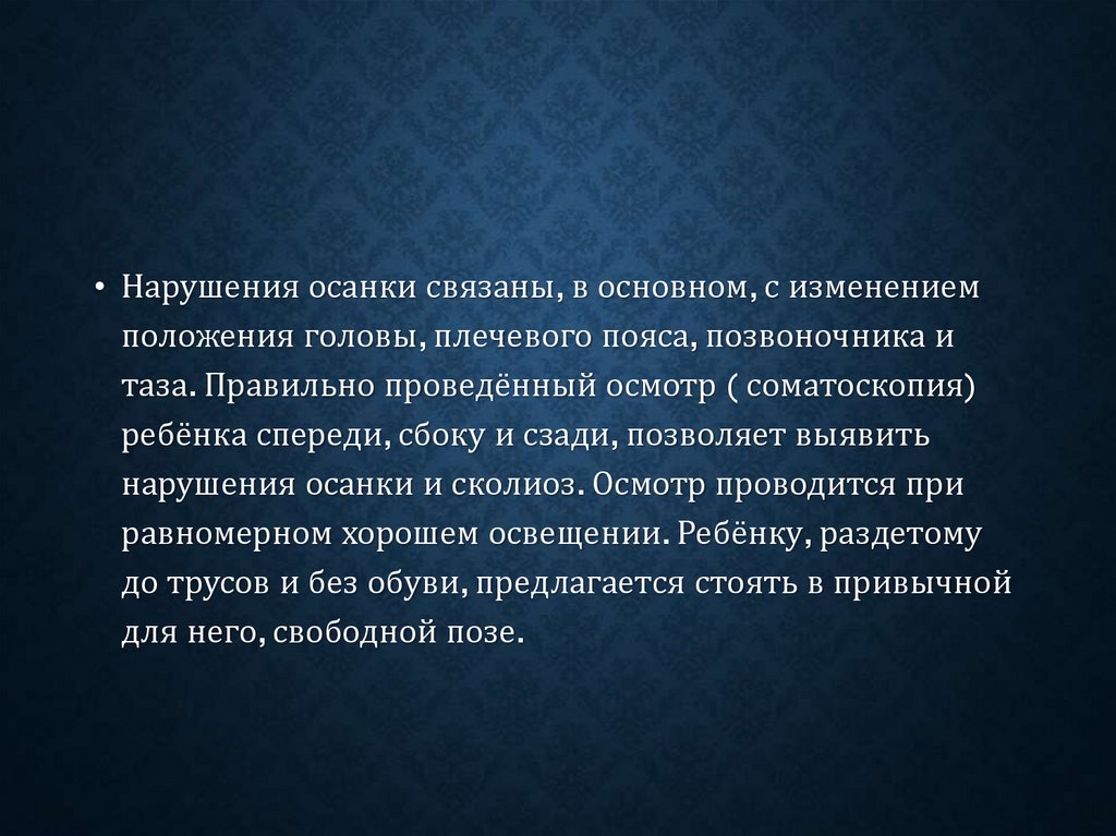 нарушения осанки и сколиоз. Осмотр проводится при