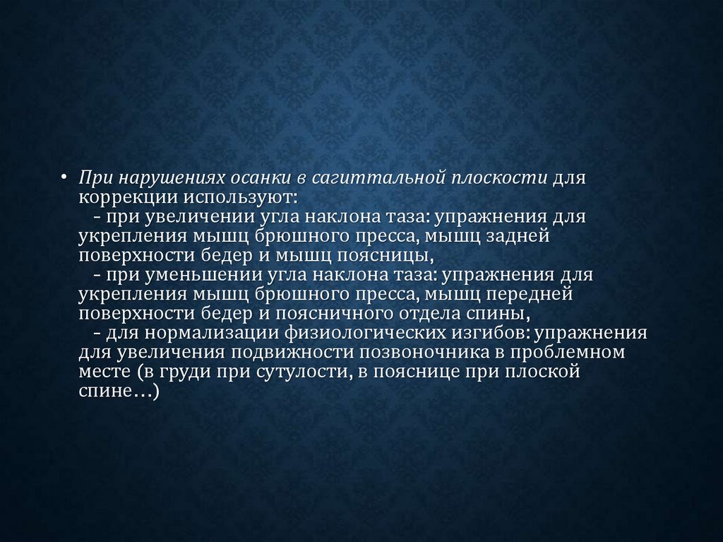 • Нарушения осанки связаны, в основном, с изменениемположения головы, плечевого пояса, позвоночника и