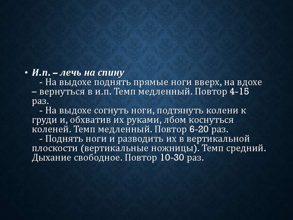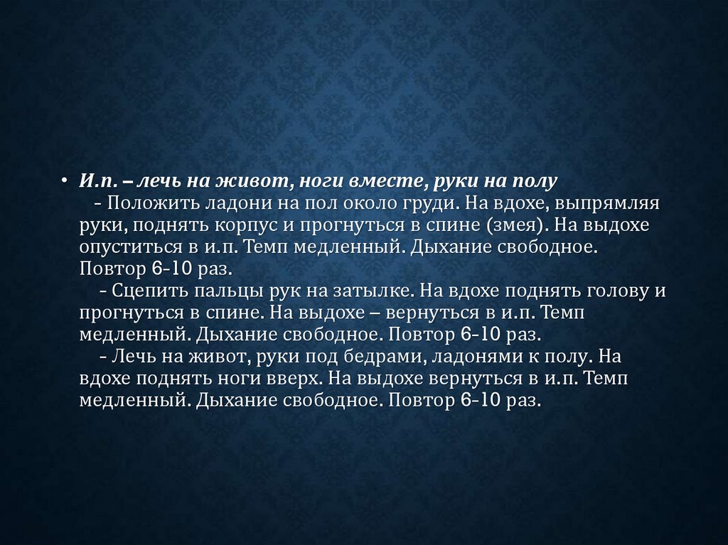 медленный. Повторить 4-10 раз.