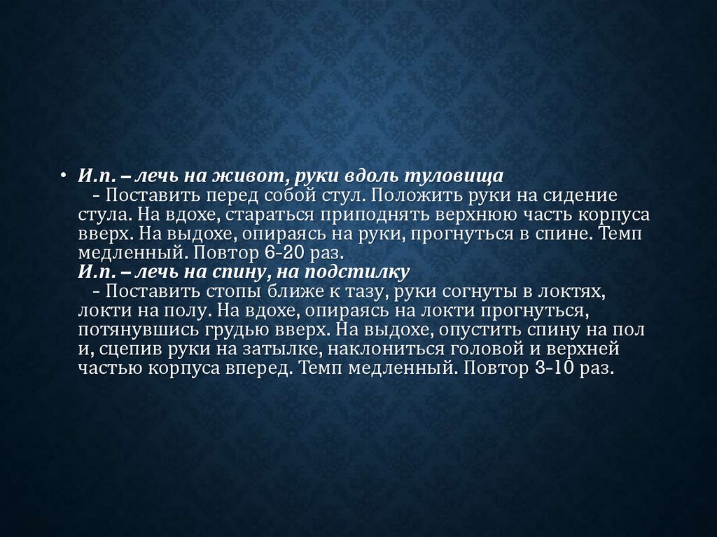 (для вытяжения поясницы). Темп медленный.