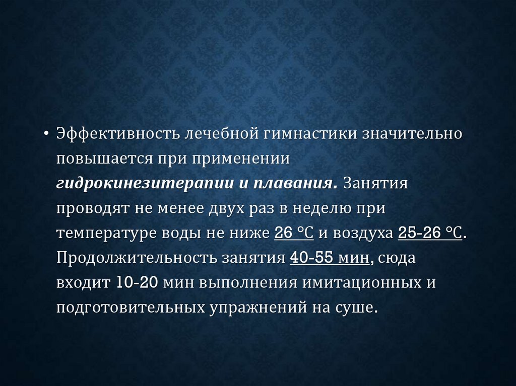• Эффективность лечебной гимнастики значительноповышается при применении