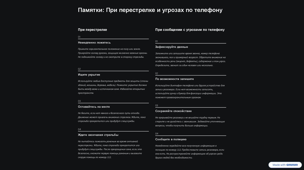 Памятки: При перестрелке и угрозах по телефонуПри перестрелке