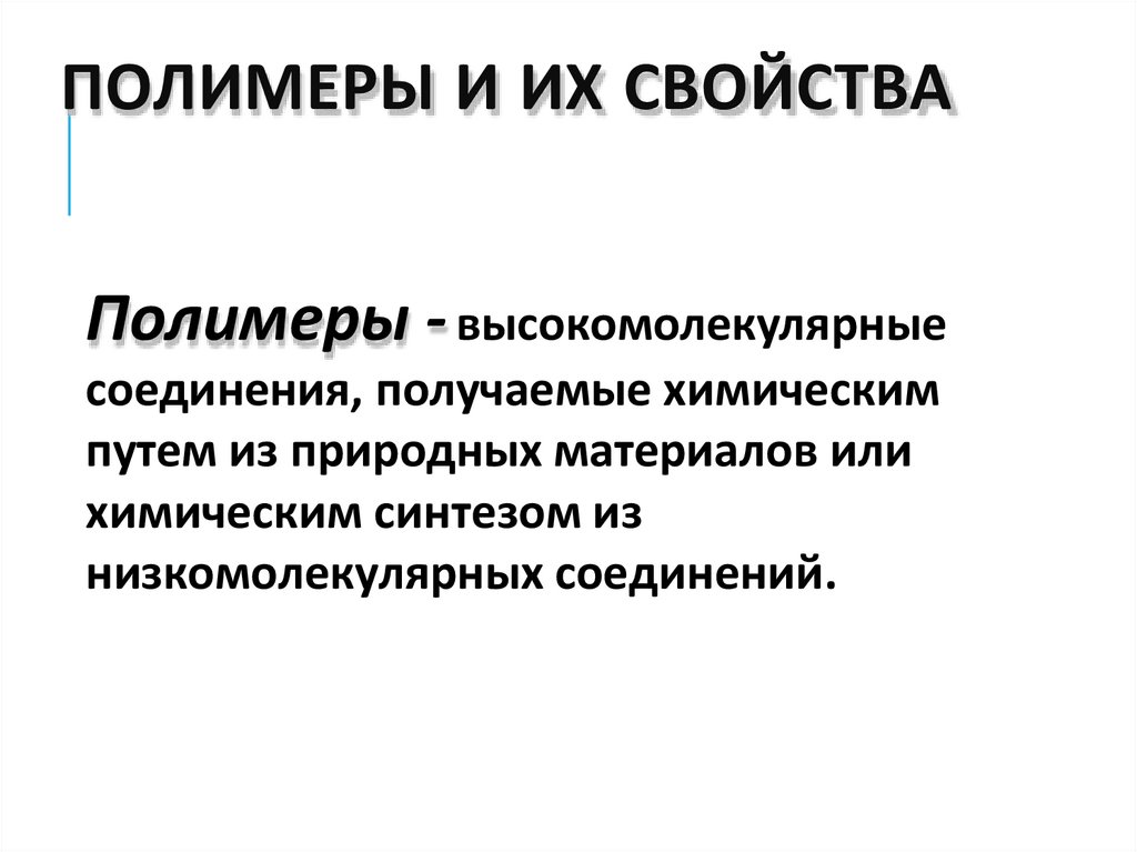 ПОЛИМЕРЫ И ИХ СВОЙСТВАПолимеры - высокомолекулярные