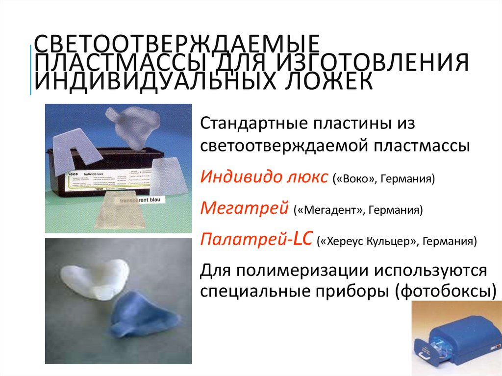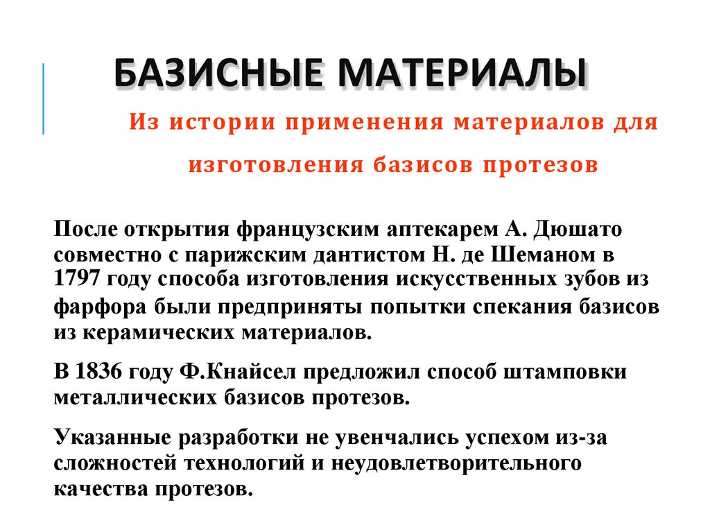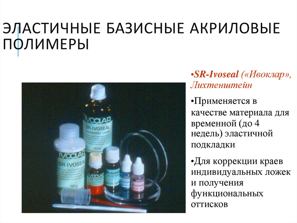 материалов («Иксолан», «Стомалит», «Эфнелит» и др.) был