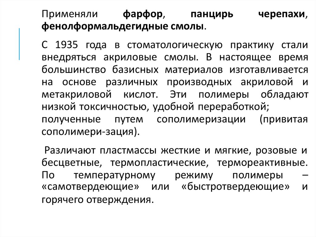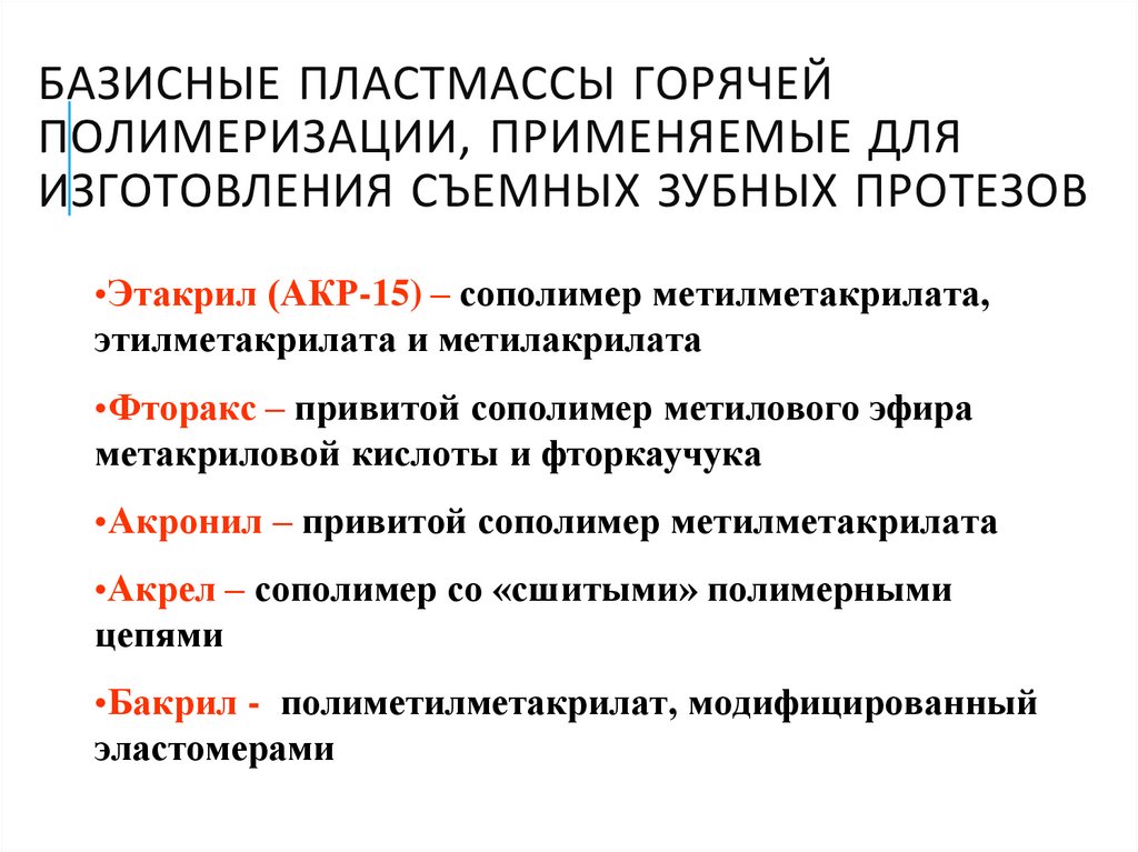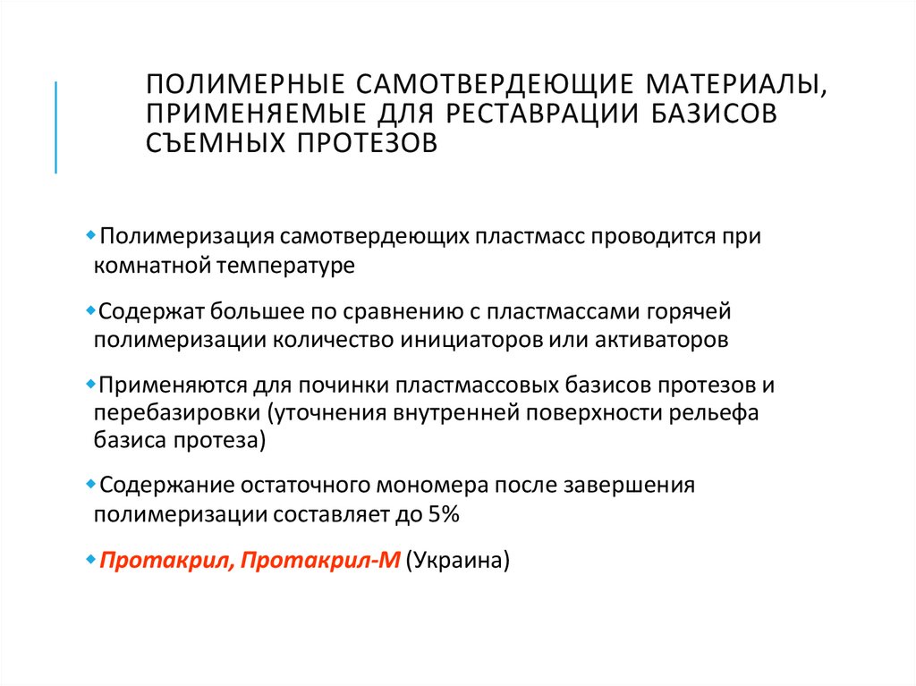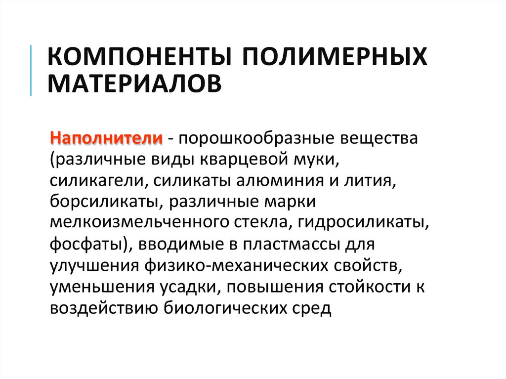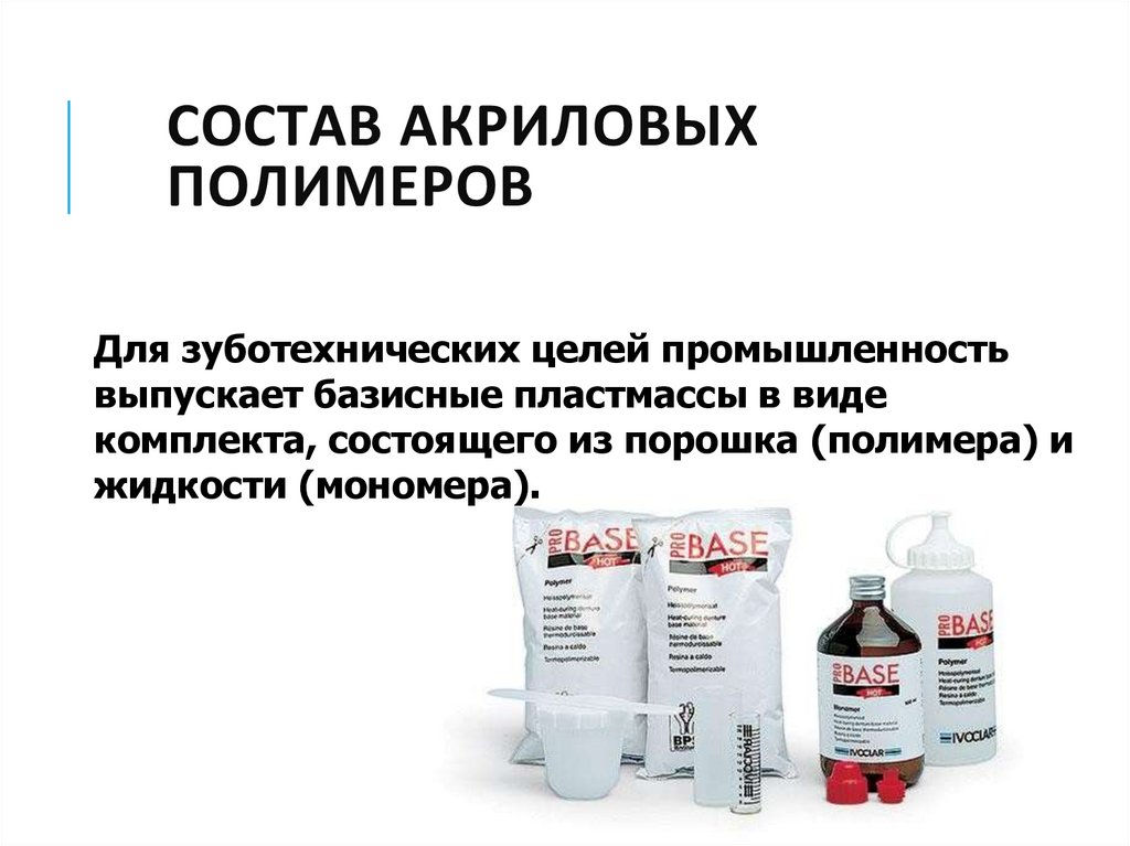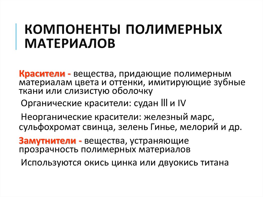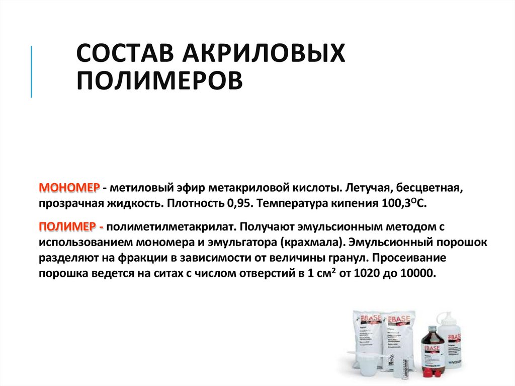 Полимеры в стоматологииИнгредиенты полимерных стоматологических