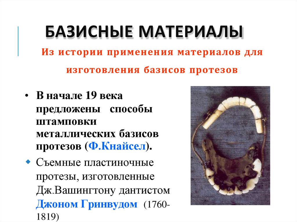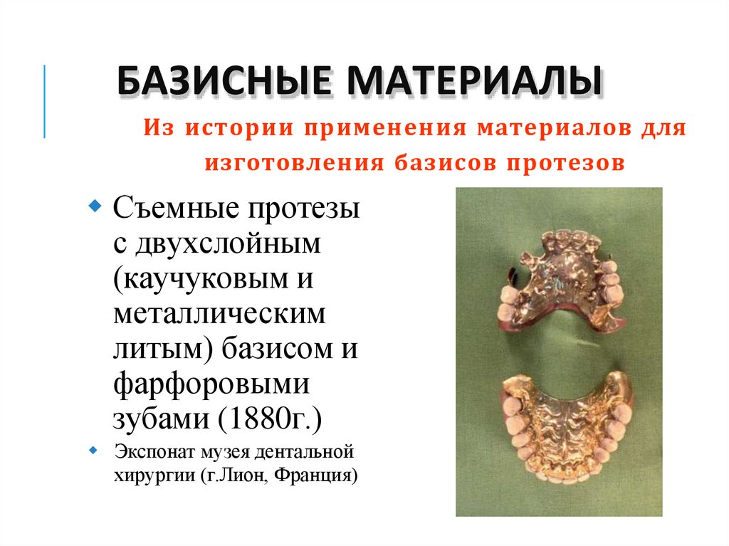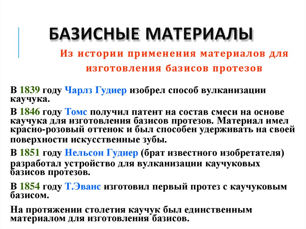 В 1854 году Т.Эванс изготовил первый протез с каучуковым