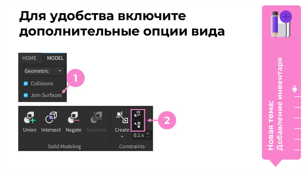 Добавление инвентаря