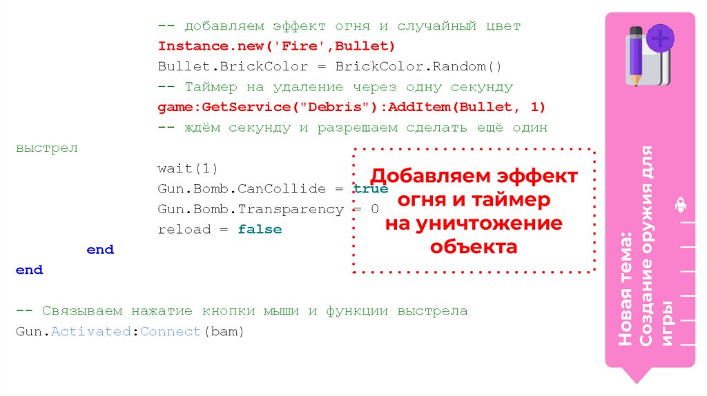 -- добавляем эффект огня и случайный цвет