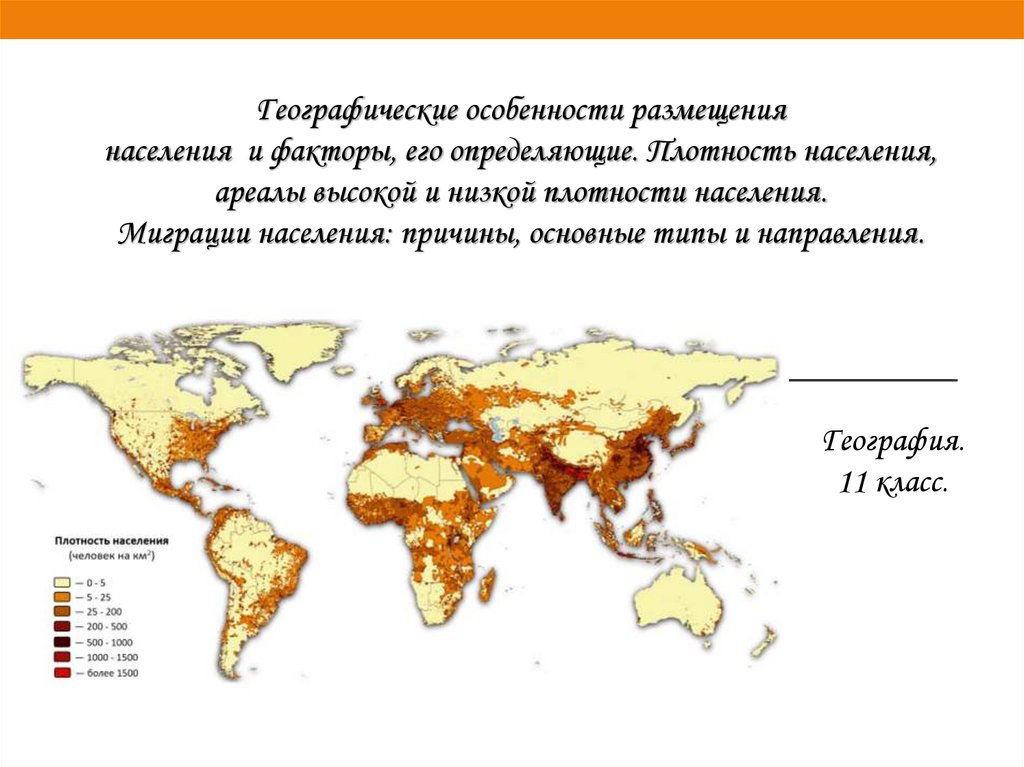 Географические особенности размещениянаселения и факторы, его определяющие. Плотность населения,