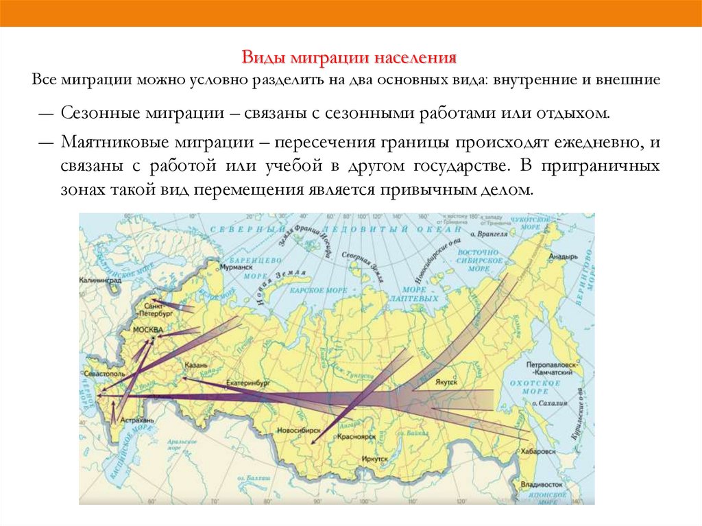 ― Сезонные миграции – связаны с сезонными работами или отдыхом.