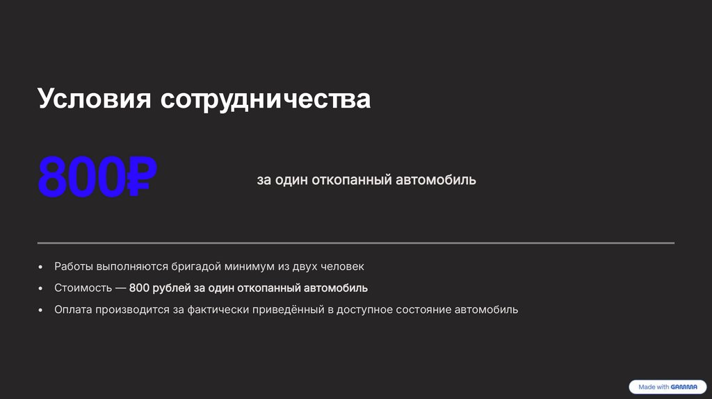 • Стоимость — 800 рублей за один откопанный автомобиль