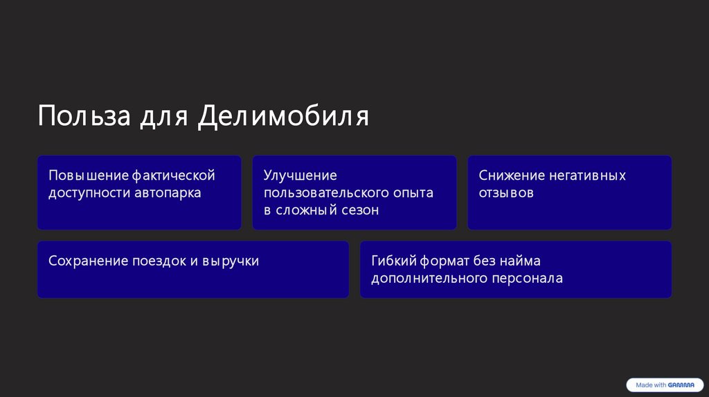 Данное предложение направлено на поддержку операционной работы Делимобиля в