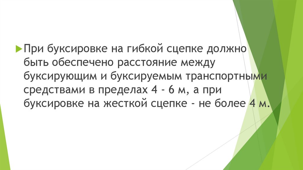 При буксировке на гибкой сцепке должнобыть обеспечено расстояние между