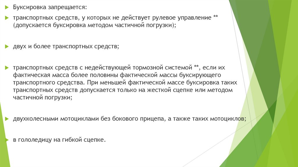 Буксировка запрещается:транспортных средств, у которых не действует рулевое управление **