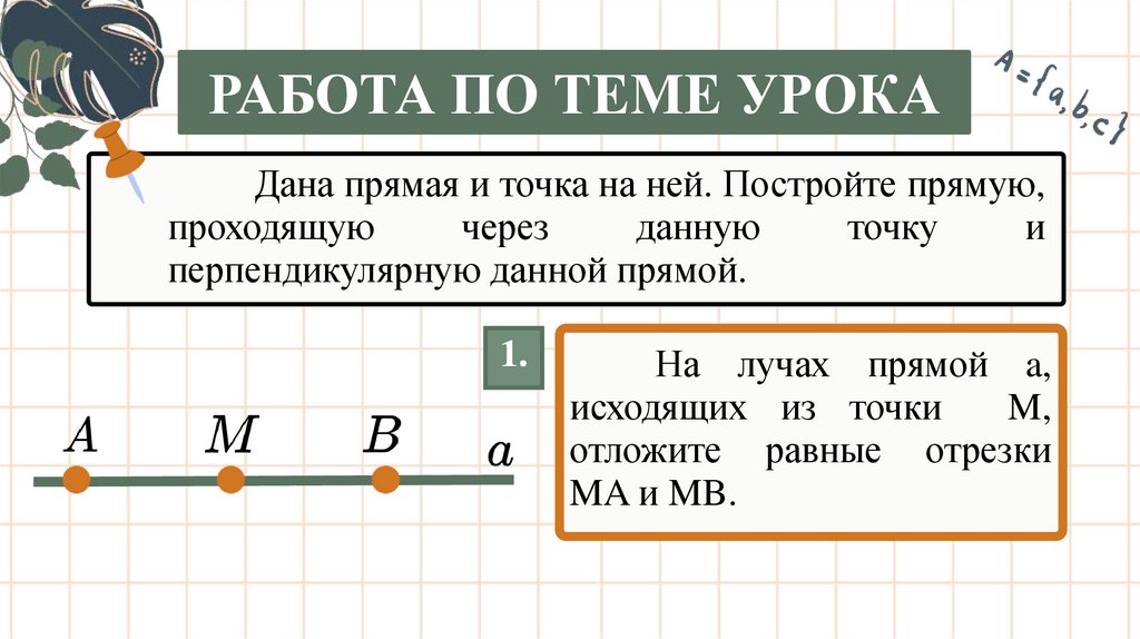 РАБОТА ПО ТЕМЕ УРОКАДана прямая и точка на ней. Постройте прямую,