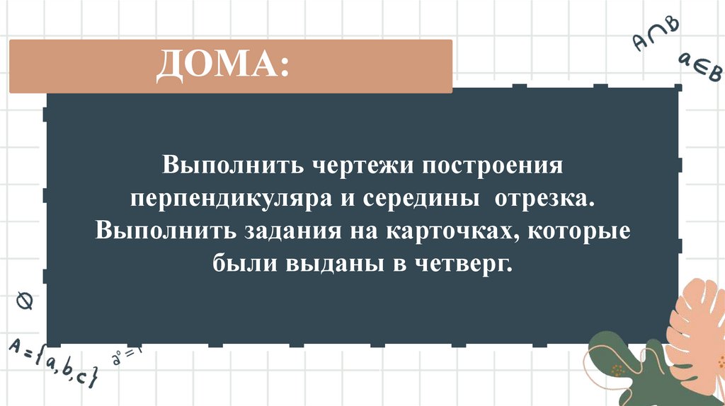 РАБОТА ПО ТЕМЕ УРОКАПостройте середину данного отрезка.
