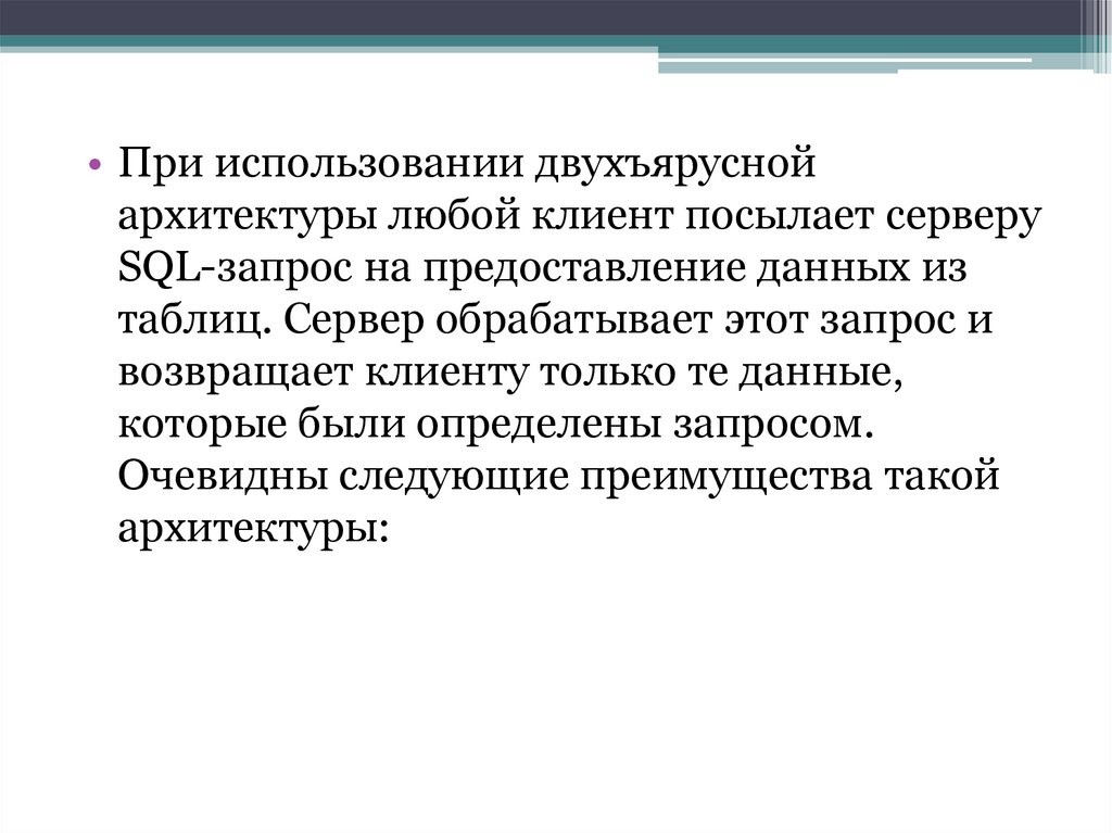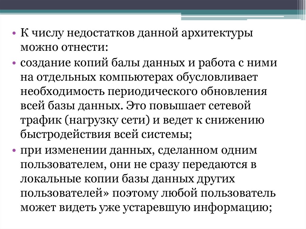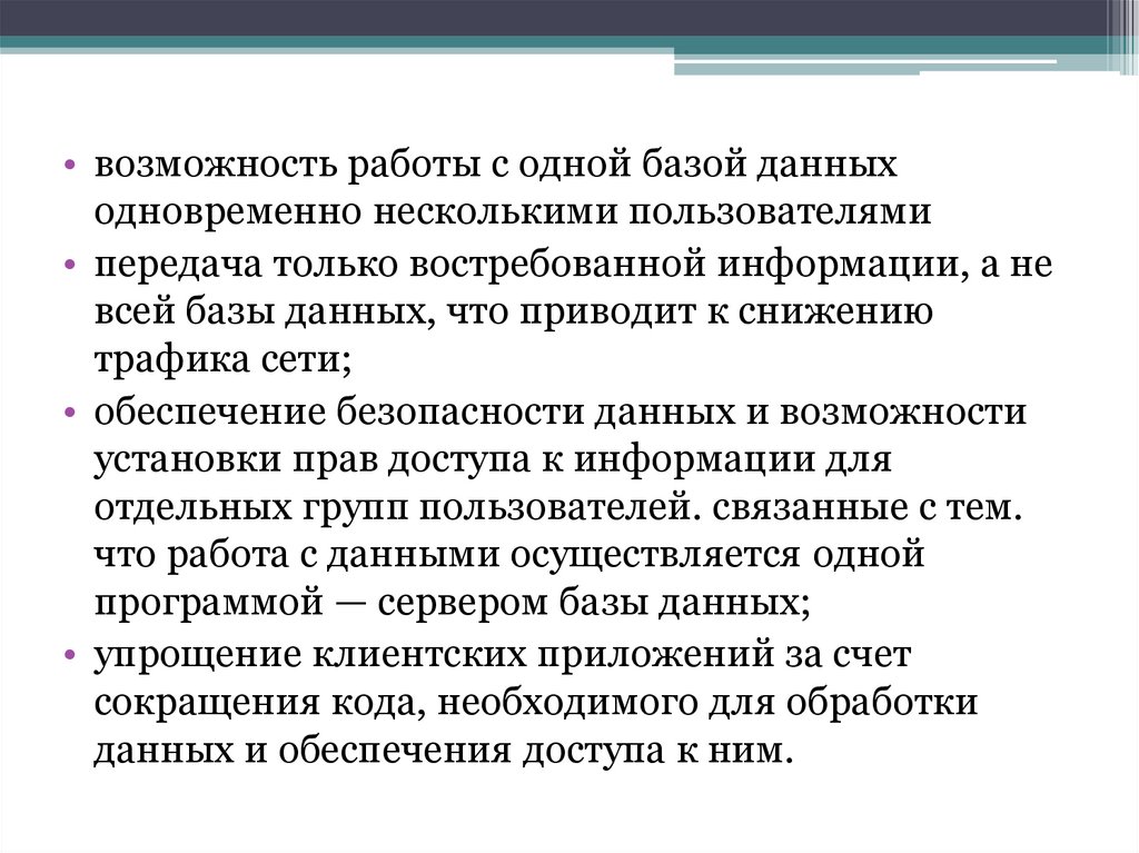 • Кроме представленной выше организациилокальной базы данных возможно осуществление многопользовательского доступа к