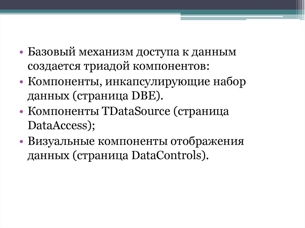 данным, таких как BDE, OLE, ODBC, DАО, АDО, и до сих пор